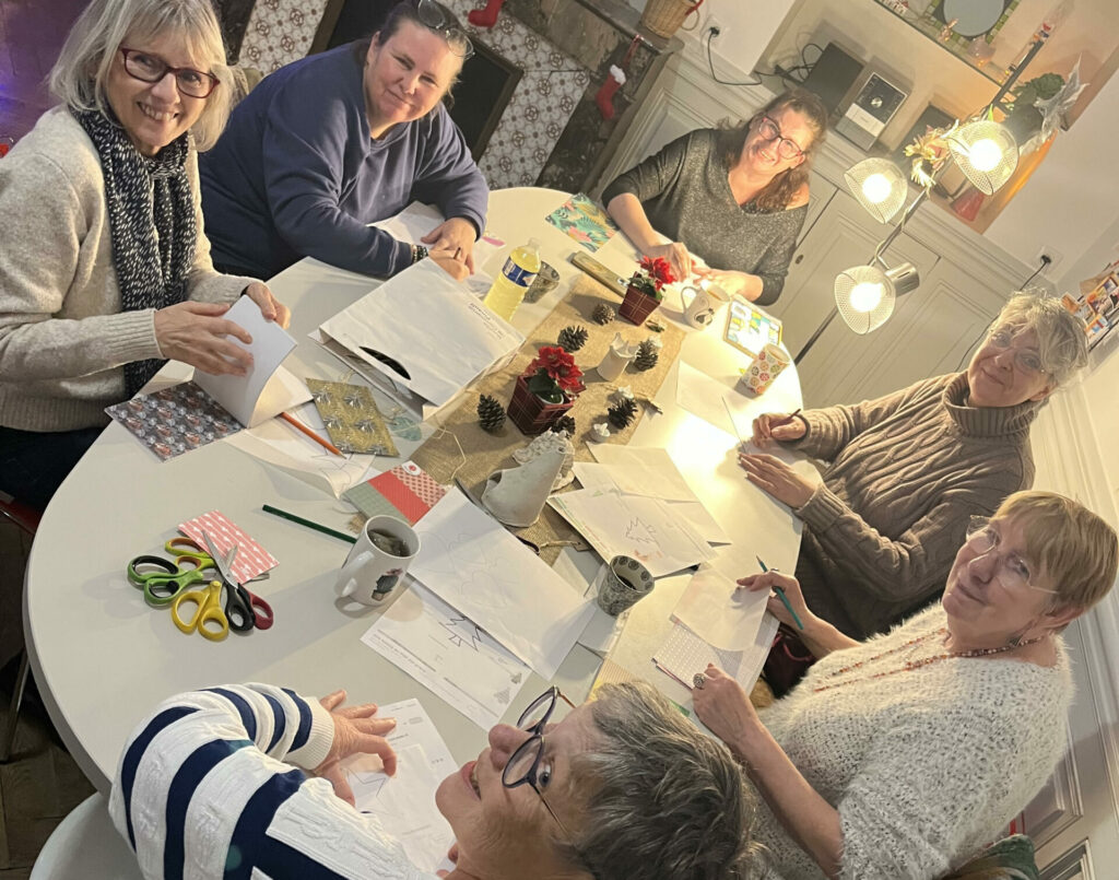En préparation des futurs cadeaux aux pieds des sapins , un groupe d’adhérentes se retrouvent cet après-midi pour personnaliser leurs étiquettes aux motifs pailletés. C’est donc certain , cette année le père Noel ne pourra pas faire d’erreur dans sa distribution…