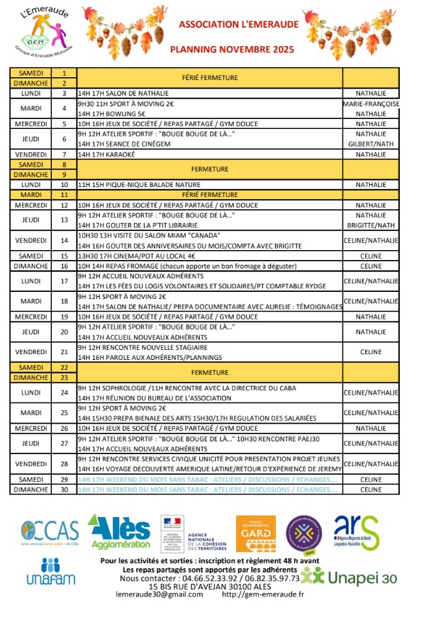 Cliquer pour télécharger le planning de Novembre au format PDF