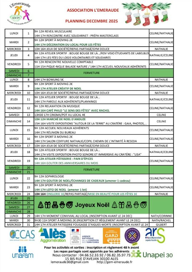 Cliquer pour télécharger le planning de Décembre au format PDF
