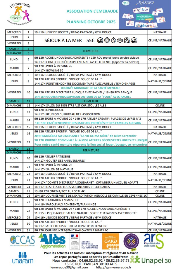 aux activités sont à faire 48h à l’avance afin que le Gem puisse organiser correctement ses activités.